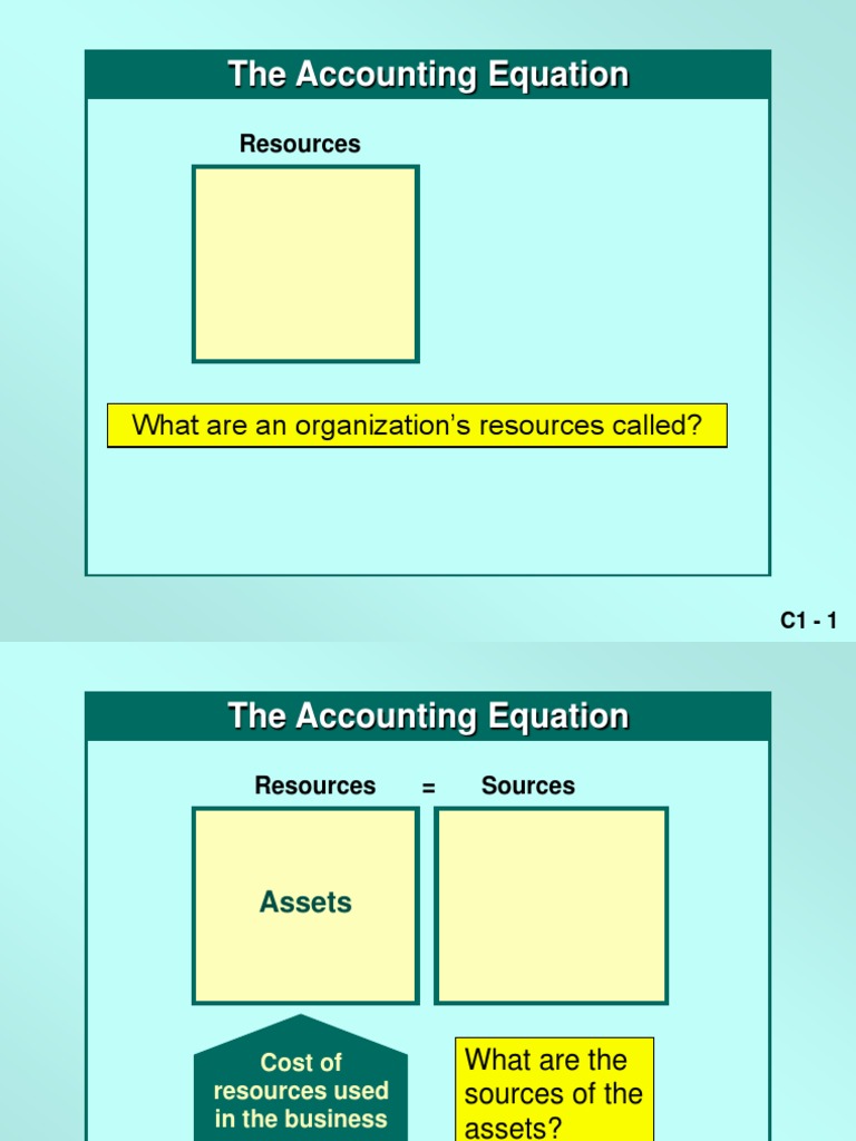 The accounting equation looks like this. Classification of assets and liabilities. Assets = liabilities + owner's equity. The accounting equation is based on the dual aspect concept of accounting, which says that every transaction has two aspects, debit and credit, and for every debit, there is equal and opposite credit. Assets = liabilities + equity because you make purchases with debt or capital, both sides of the equation must equal.
